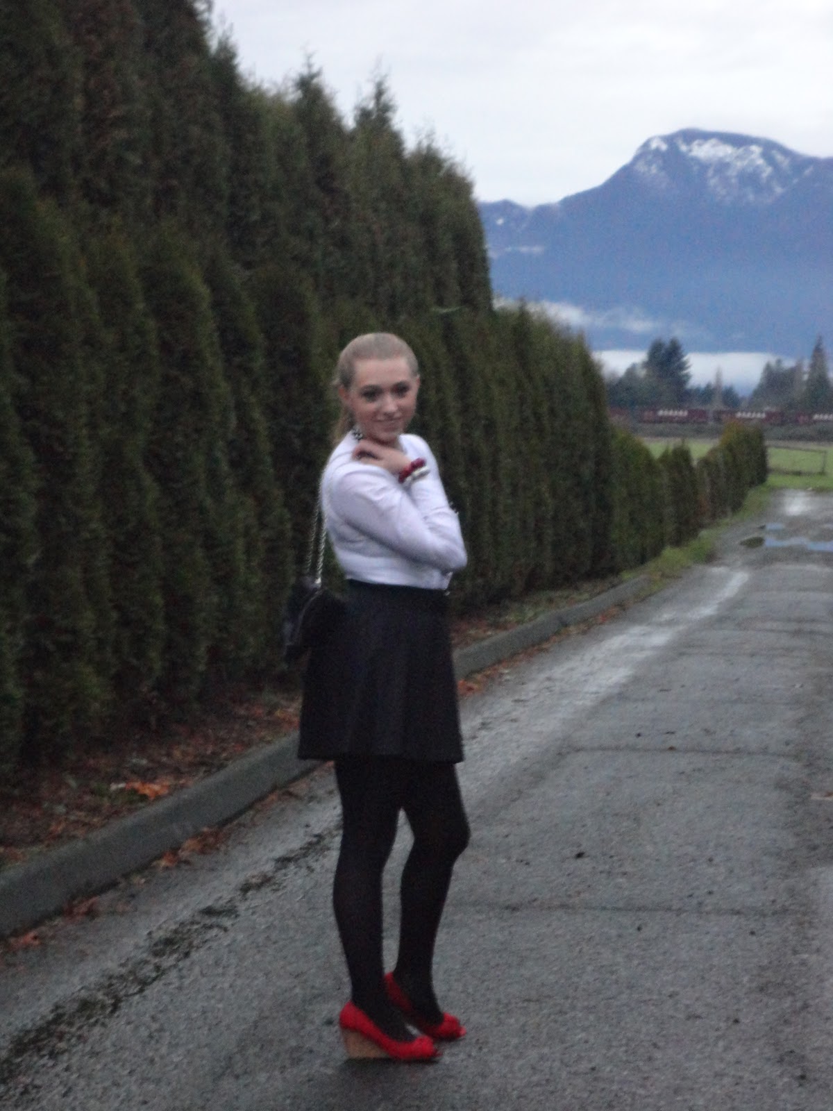 This outfit reminds me of Khloe Kardashian. But it was inspired by a mans bow tie. I added a skirt to make it more feminine, along with the blouse. This outfit is very girlie, although inspired by the guys! I added a pop of colour to the shoes. I love red at this time of year, and these shoes are not to high and not to low. It gives me the perfect high. The skirt is one of my favourites. I have been wearing it since I was in grade 9. I have been looking for something similar but no such luck. I love the texture of this blouse, it matches well with the texture of the scarf. What do you think!